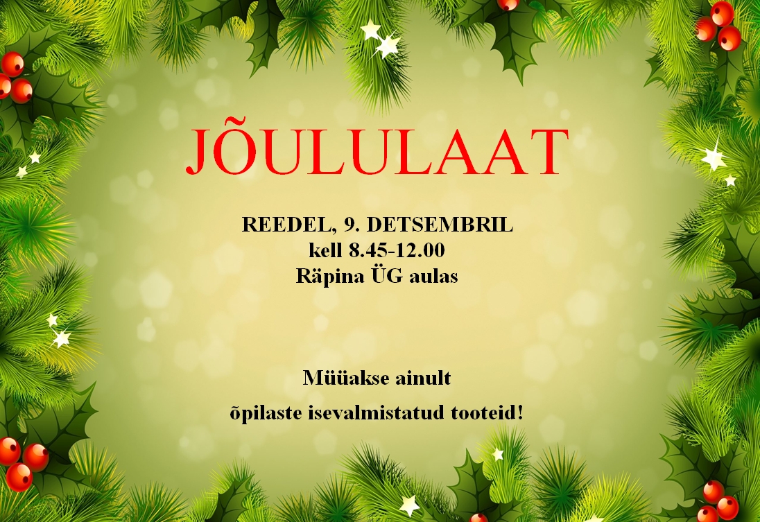 - Jõululaadal osalemiseks tuleb luba küsida klassijuhatajalt.