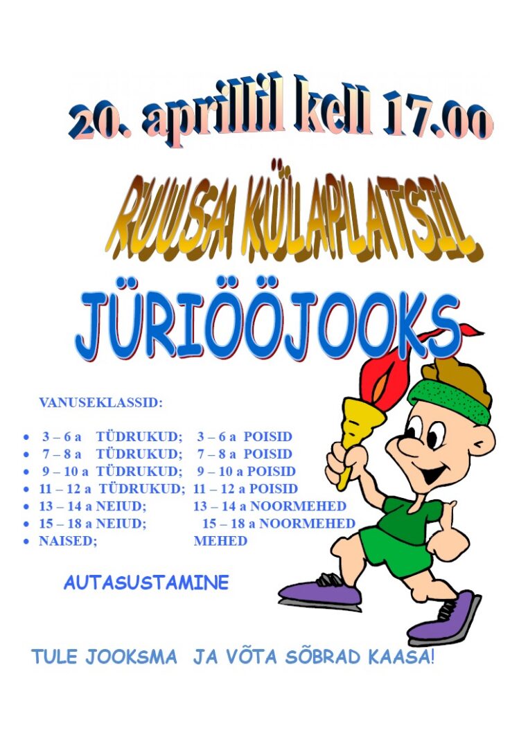 Jüriööjooks Kalender Lisa kalendrisse Add to Timely Calendar Lisa Google kalendrisse Lisa Outlook kalendrisse Add to Apple Calendar Add to other calendar Export to XML Aeg: 20. apr. 2017 kell 17:00 2017-04-20T17:00:00+03:00 2017-04-20T17:15:00+03:00 Koht: Ruusa külaplats Ruusa 64403 Põlva maakond Eesti Piletiinfo: Tasuta Kontaktinfo: Räpina Valla Kultuurikeskus 796 1361 e-post Räpina kultuurikeskus Räpina Spordikool sport jaga